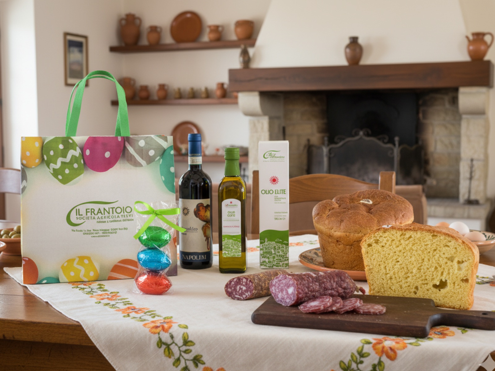 Elegante confezione pasquale con prodotti tipici umbri: le migliori specialitร della Pasqua Umbra.